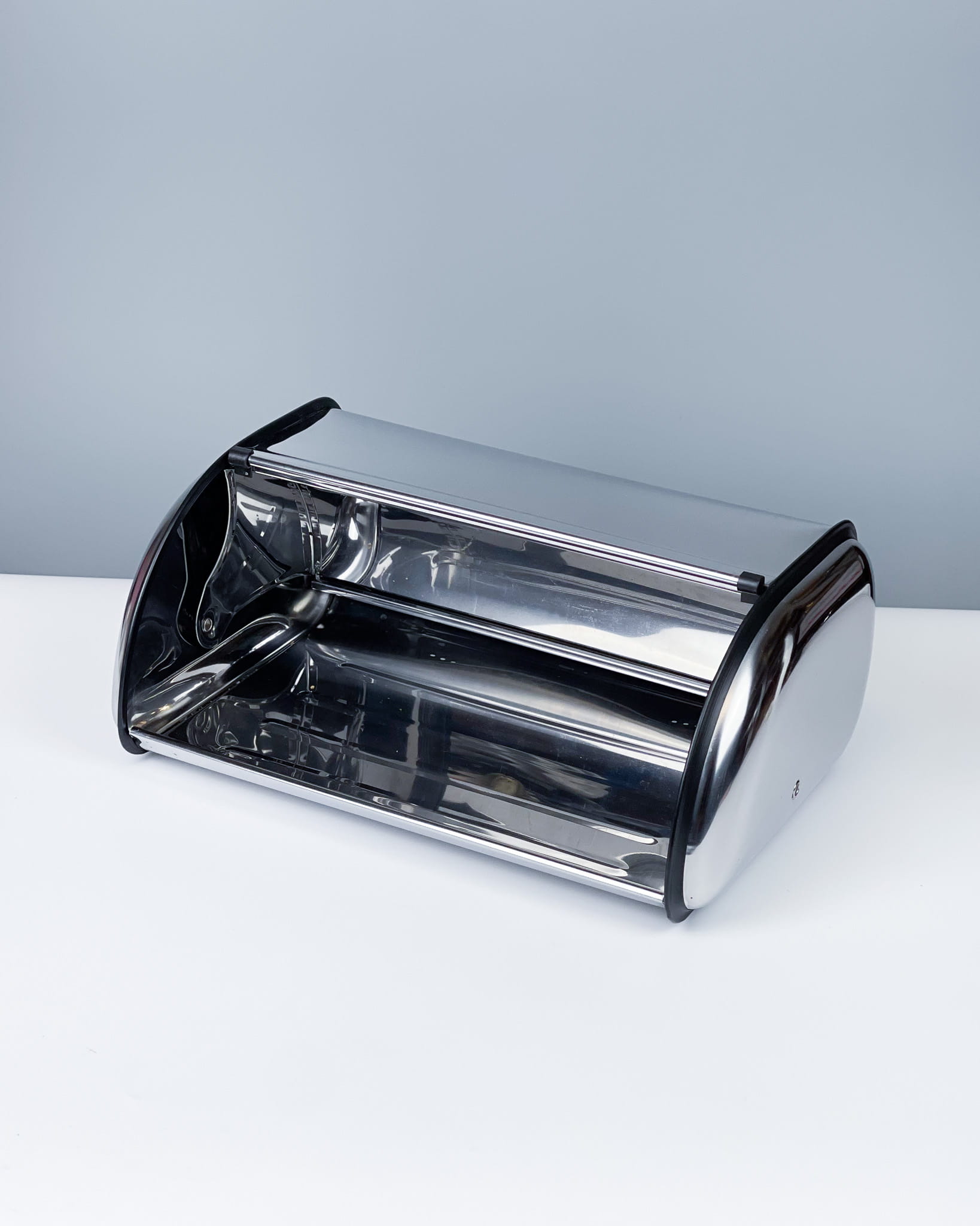 Chlebak ze stali nierdzewnej. Stan bardzo ładny, niewielkie ryski / 35 x 23 cm / wysokość: 15 cm / 50 zł