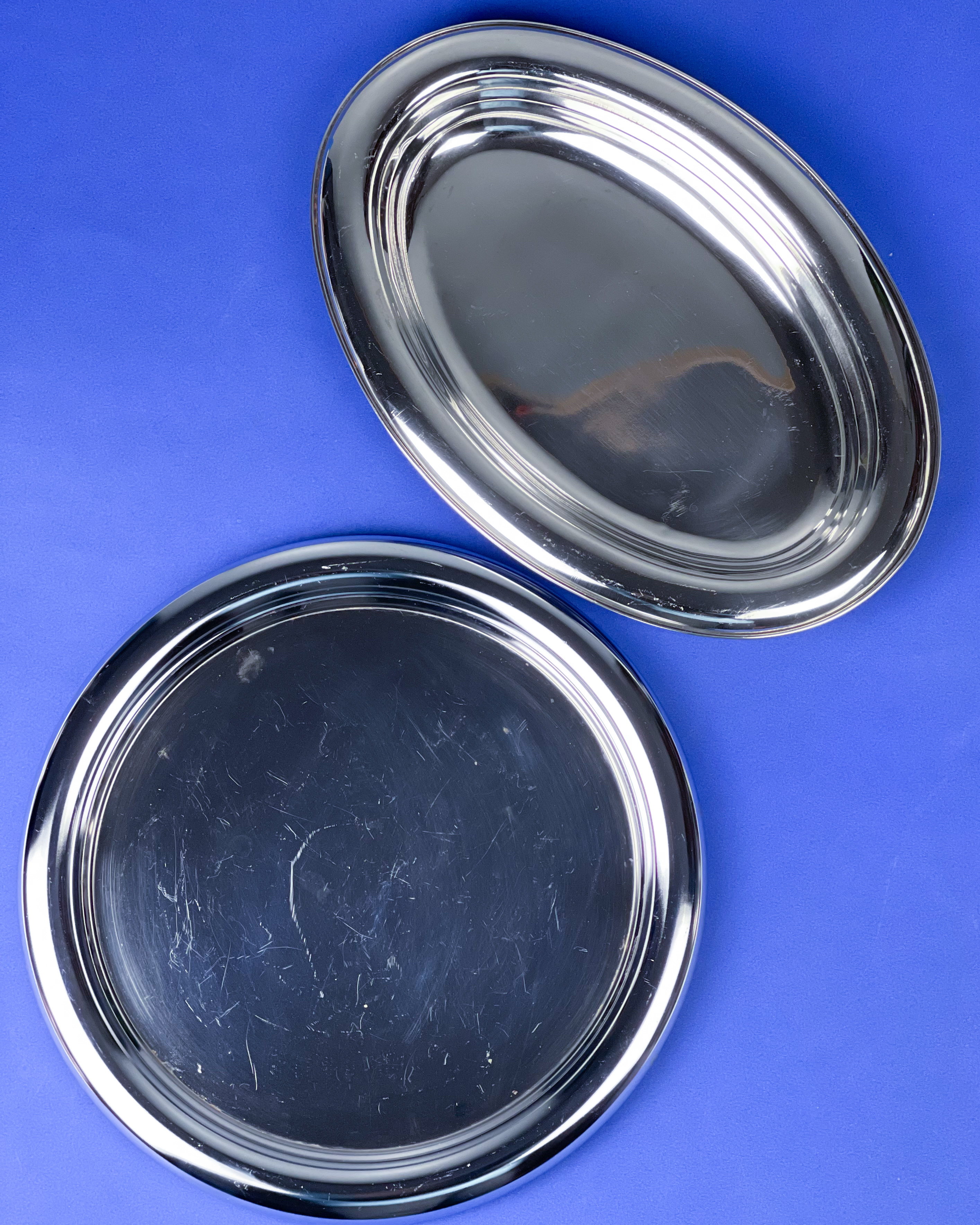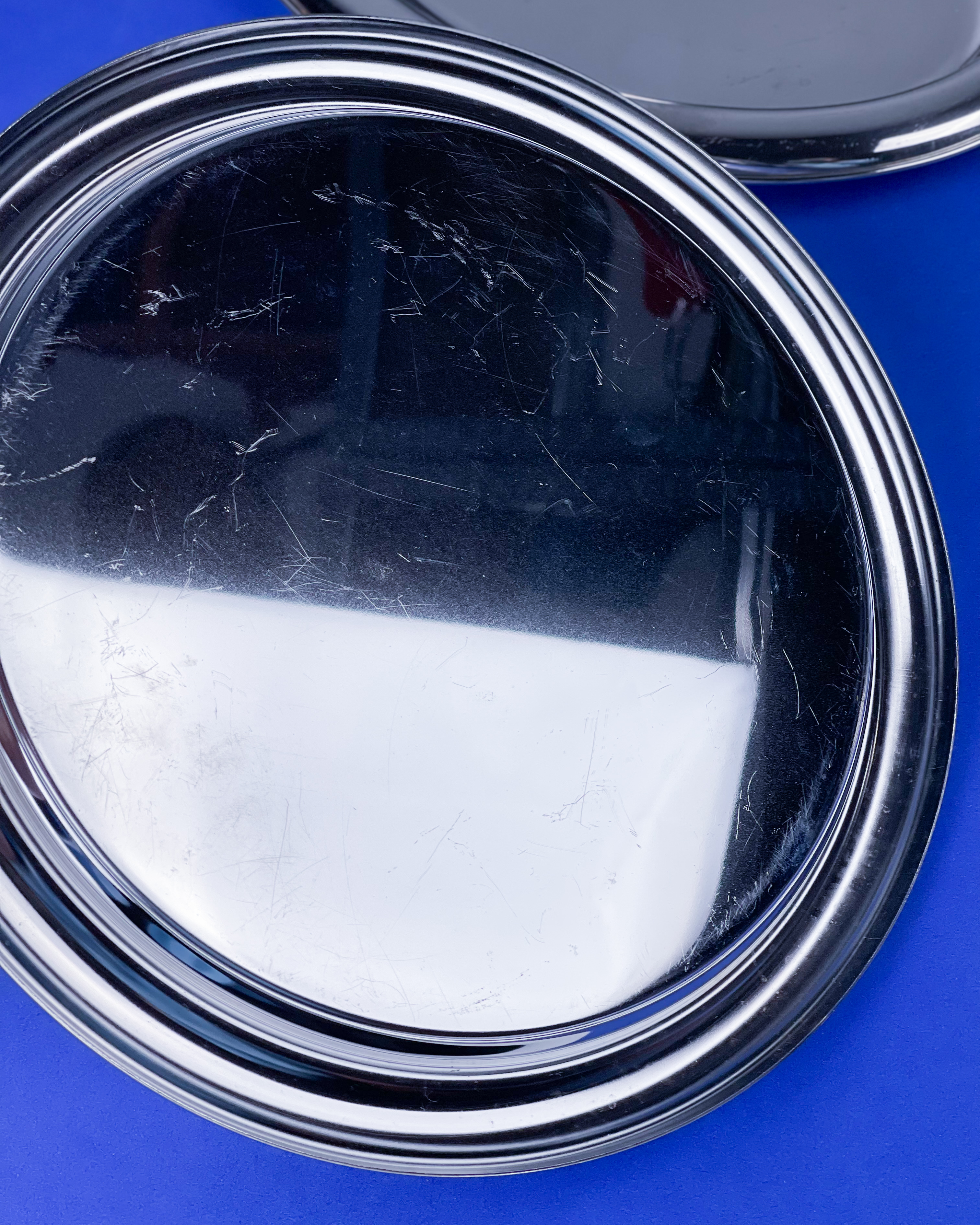 Dwie tace stalowe z fajnym grubym kołnierzem. Mają mocne ryski jak się spojrzy pod kątem /