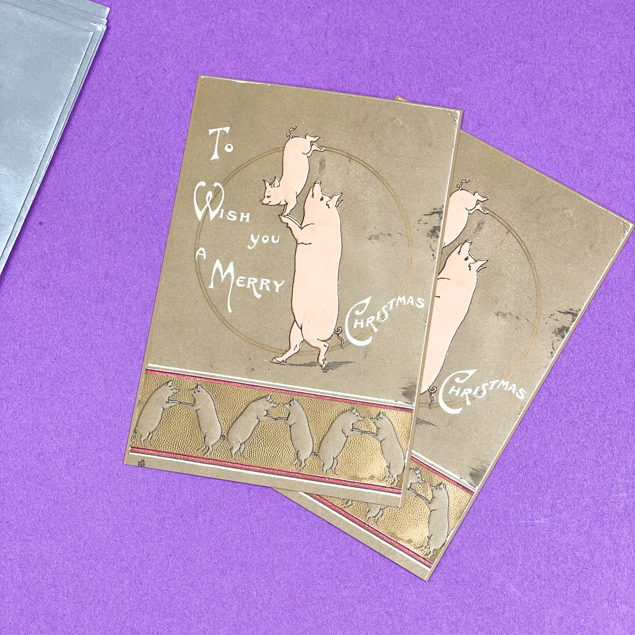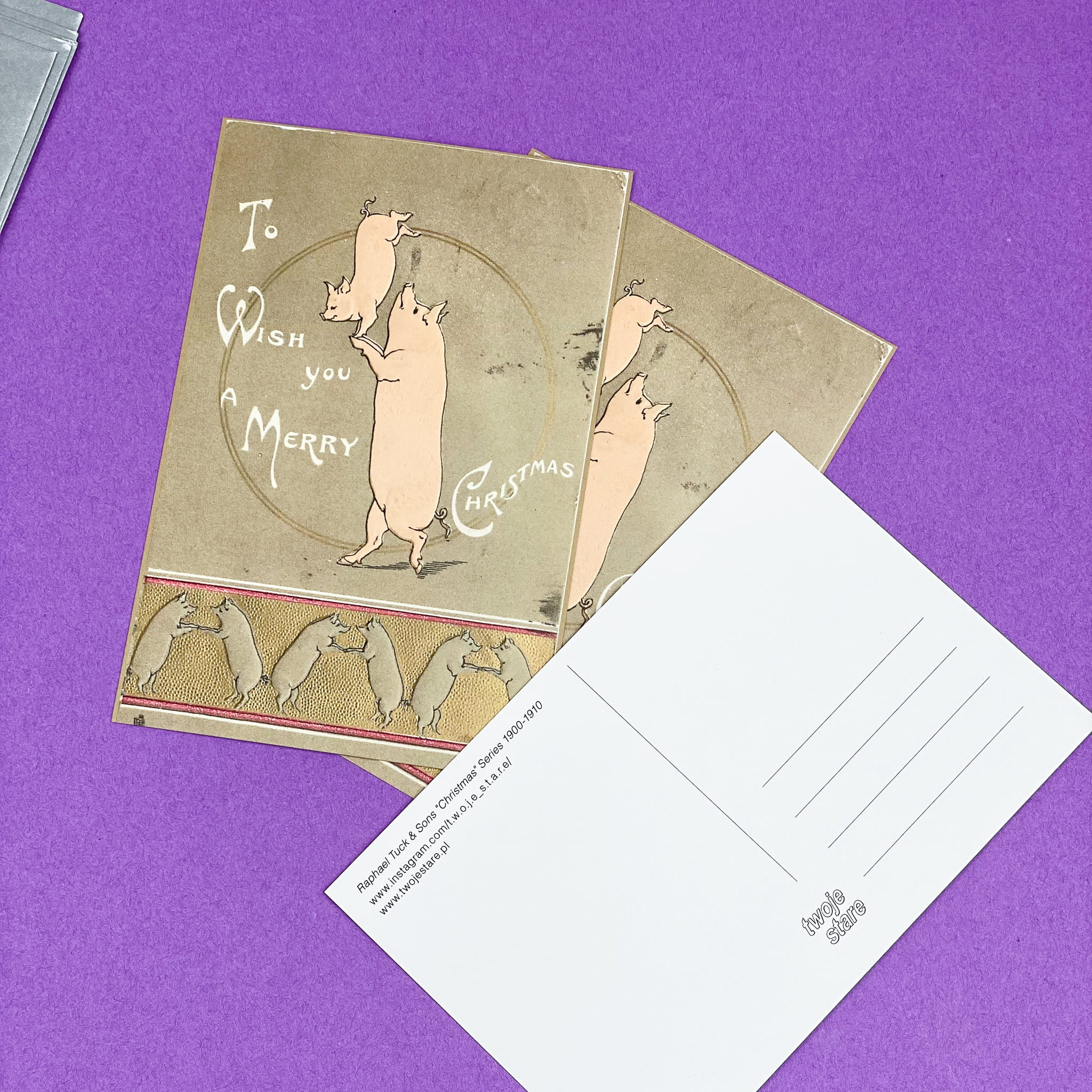 Kartka pocztowa z życzeniami świątecznymi. Przedruk starej wiktoriańskiej kartki Raphael Tuck & Sons "Christmas" Series / lata 1900-1910 / wymiar: 10x15 cm / papier: Munken Pure Rough 300g / +koperta srebrna