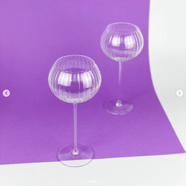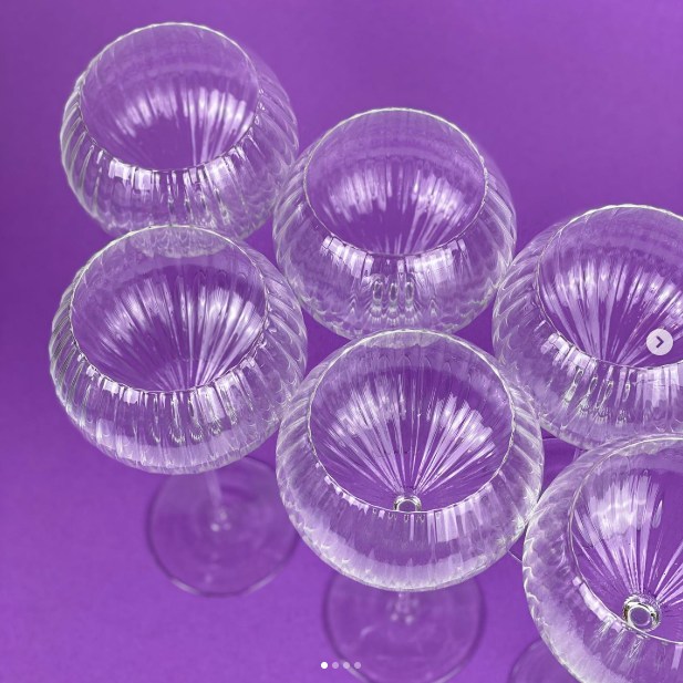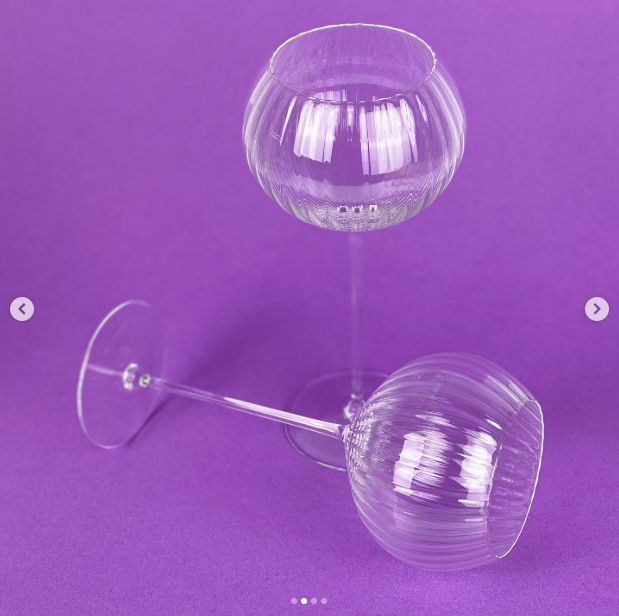 Czeskie kieliszki w stylu retro, duże bomby do czerwonego wina z falowanego szkła / średnica górna: 7 cm / wysokość: 21 cm / pojemność: 450 ml / komplet 2 sztuki