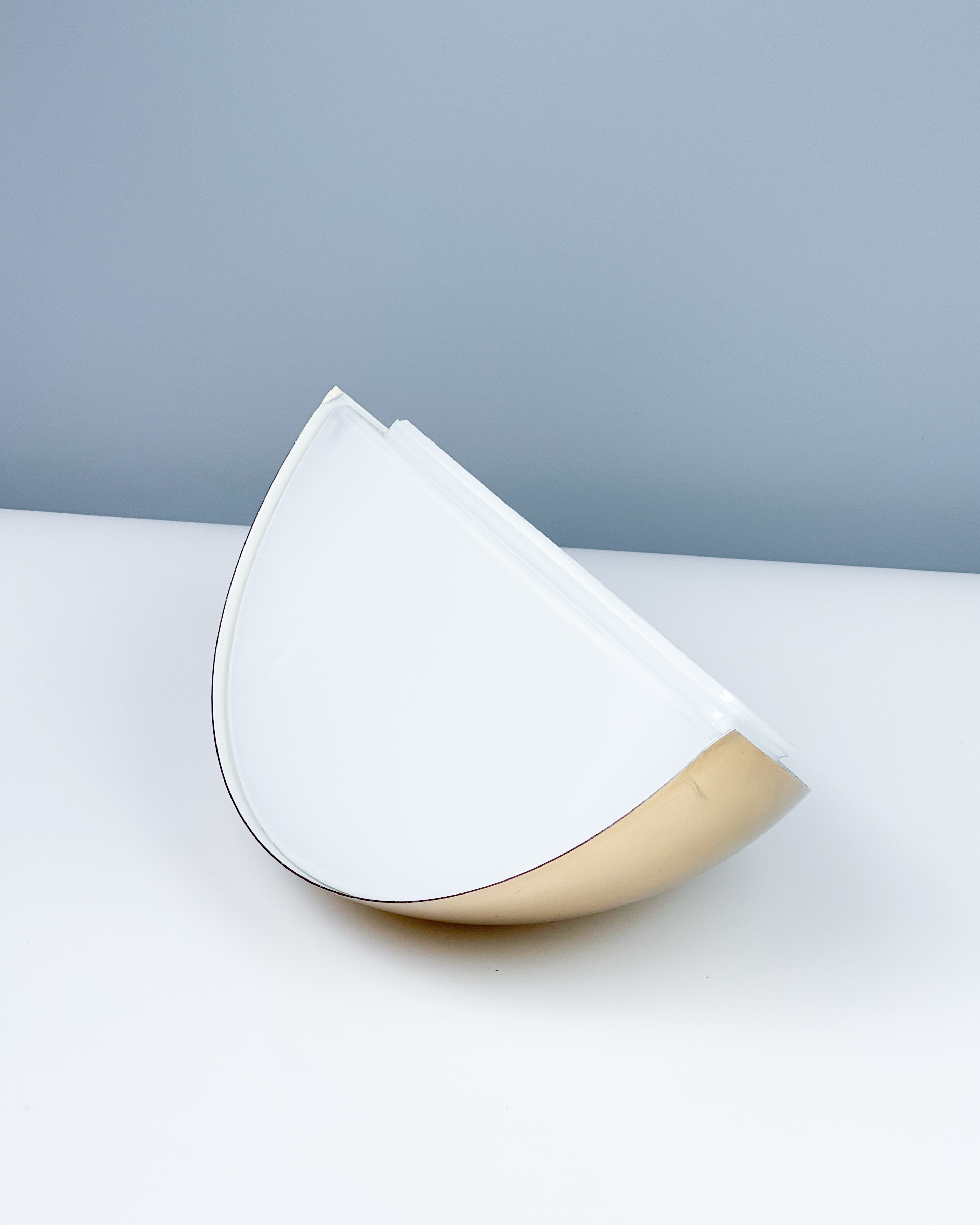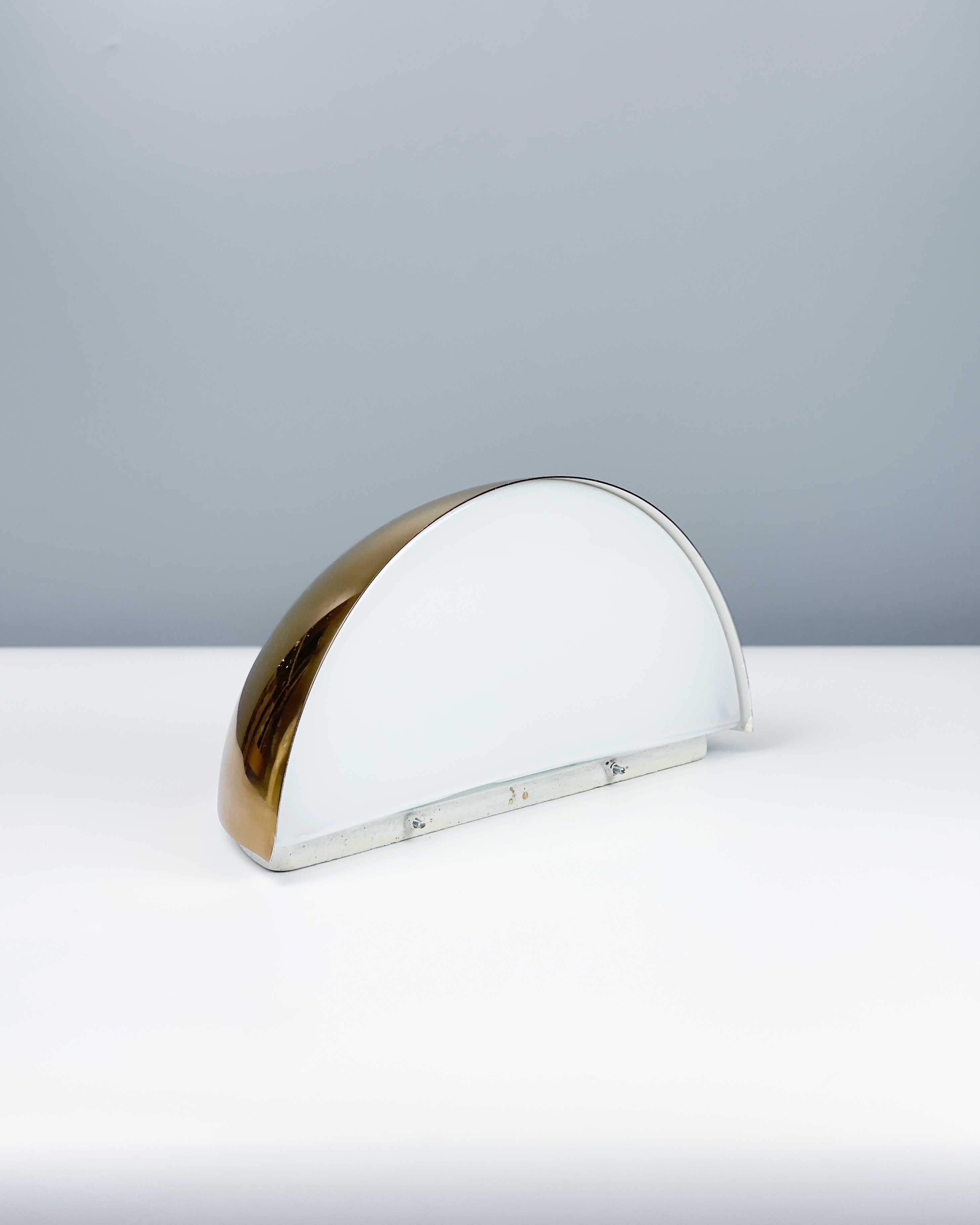 Wspaniały kinkiet - połączenie mosiądzu i mlecznego szkła, minimalistycznie ale na bogato. Kinkiet produkcji Limburg Glashütte, lata 70./80., stan bardzo dobry vintage - delikatne ryski na metalu. Działa, jest piękny.