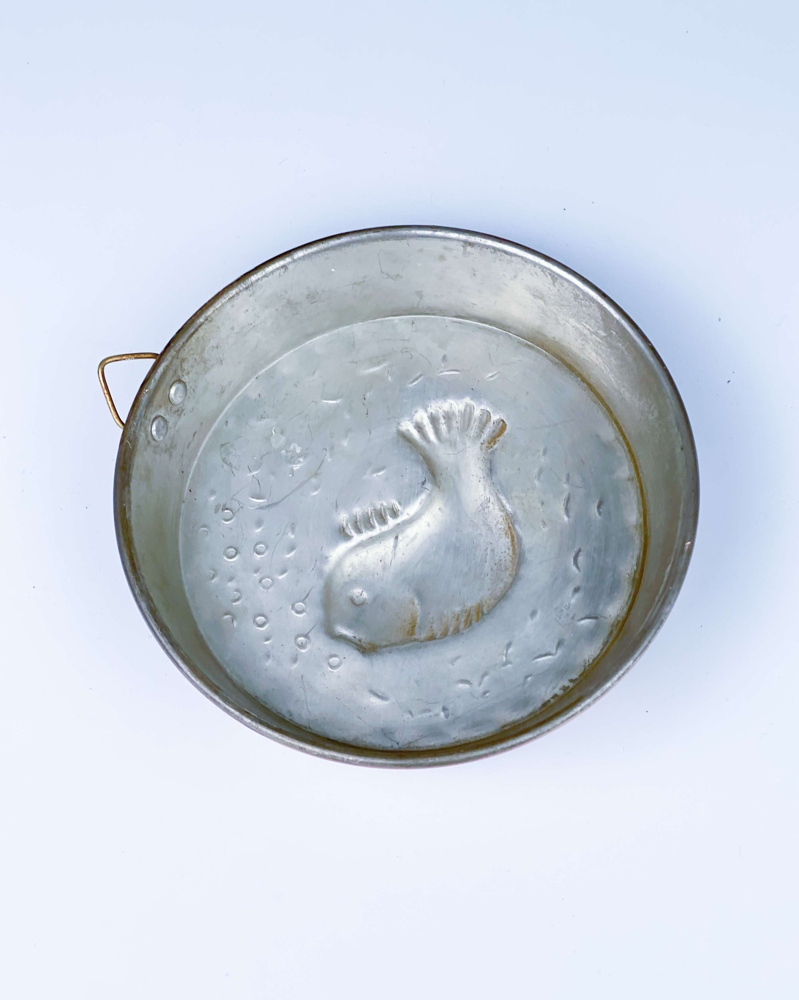 Stara (ale w idealnym stanie) miedziana forma do pieczenia z motywem ryby, może być używana do galaretek, pieczenia ciast lub jako dekoracyjna dekoracja ścienna / średnica: 13 cm / wysokość: 3 cm / 90 zł