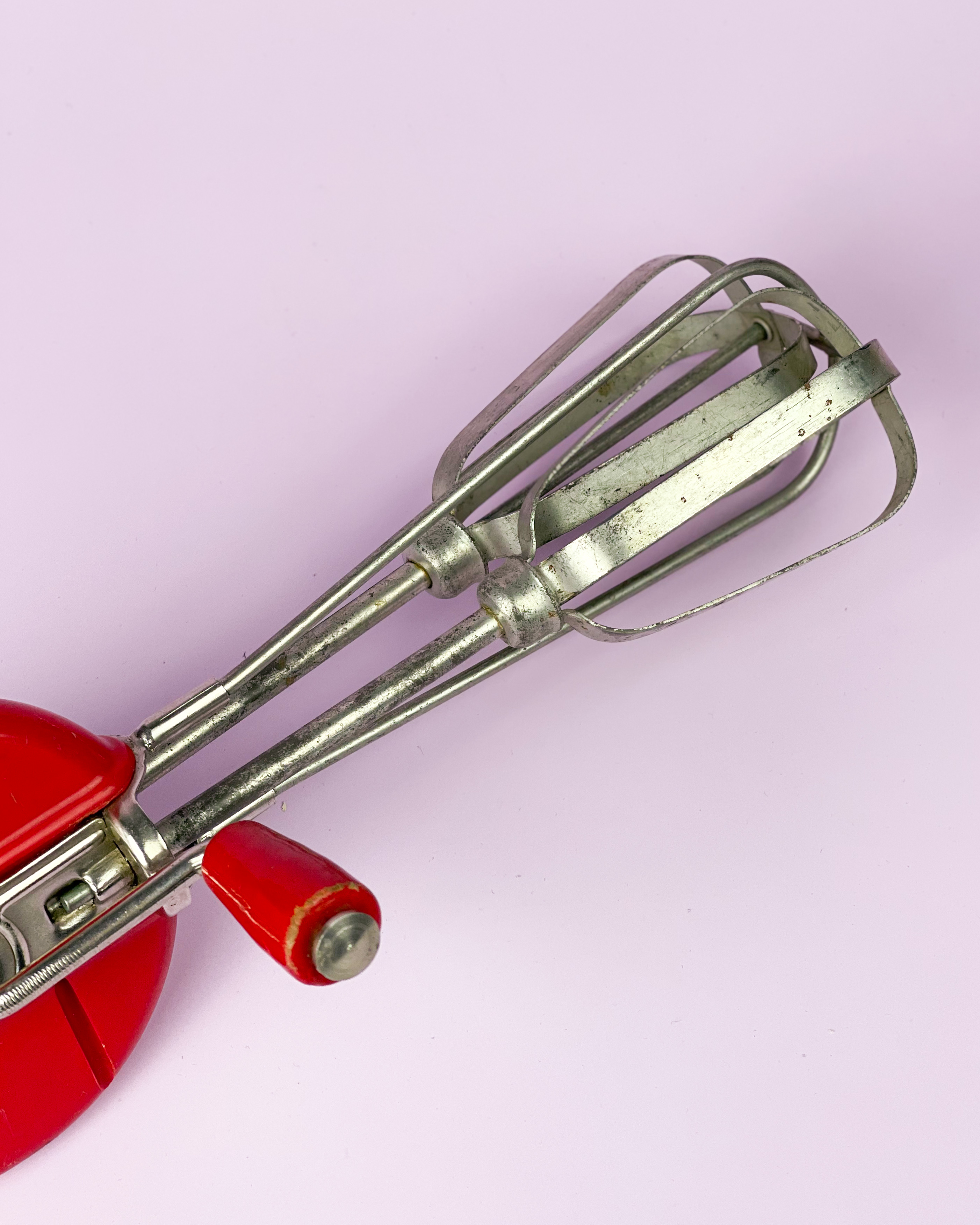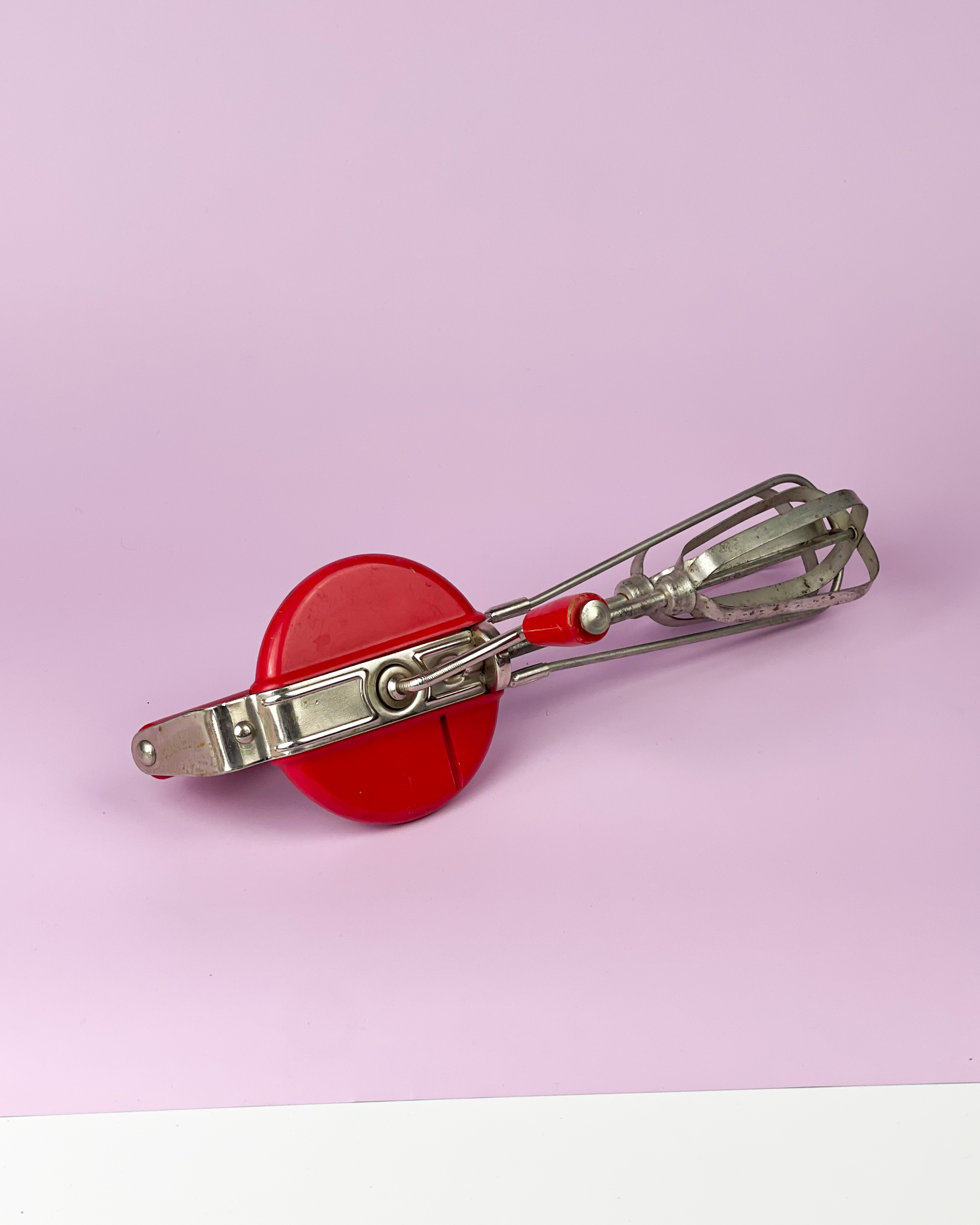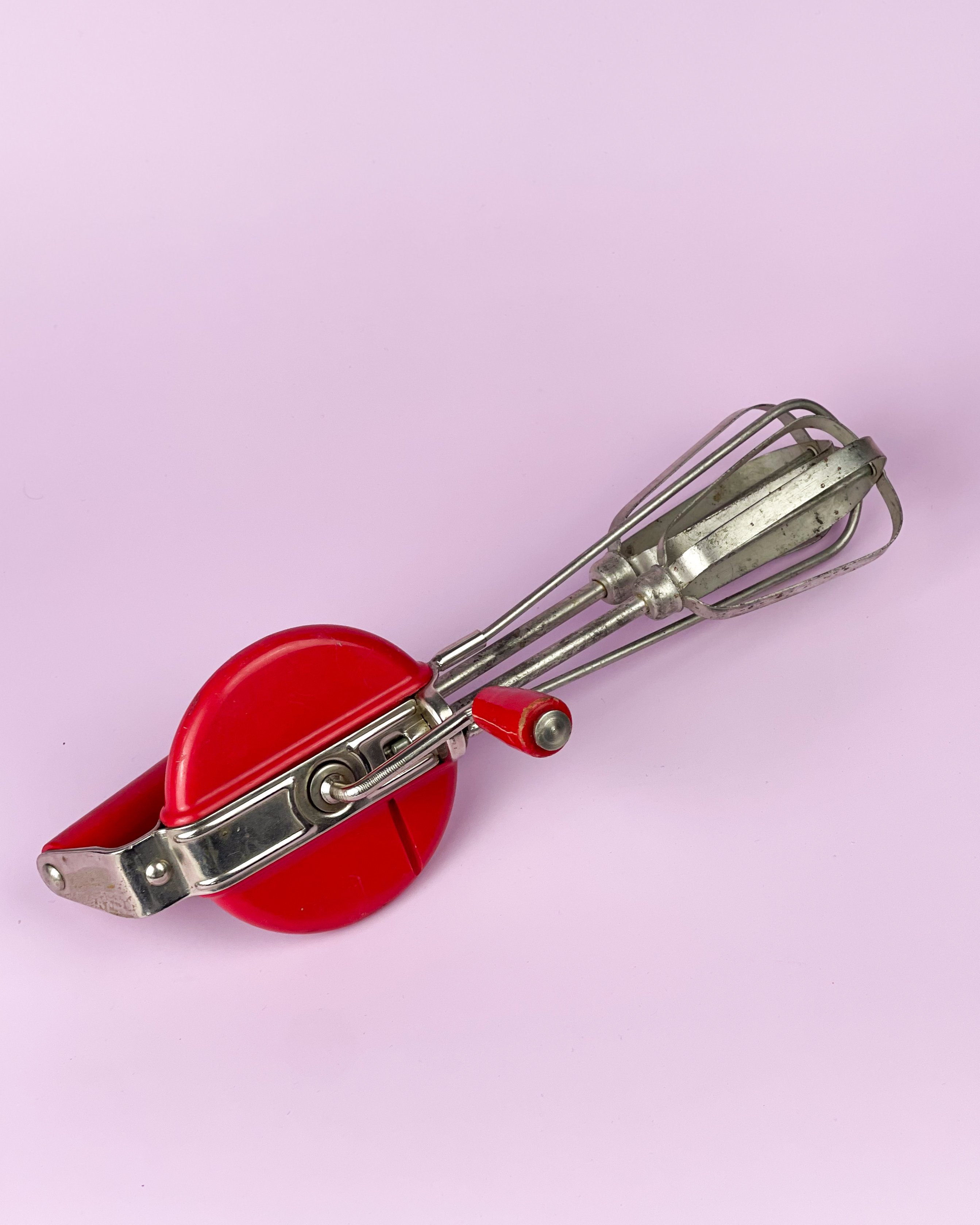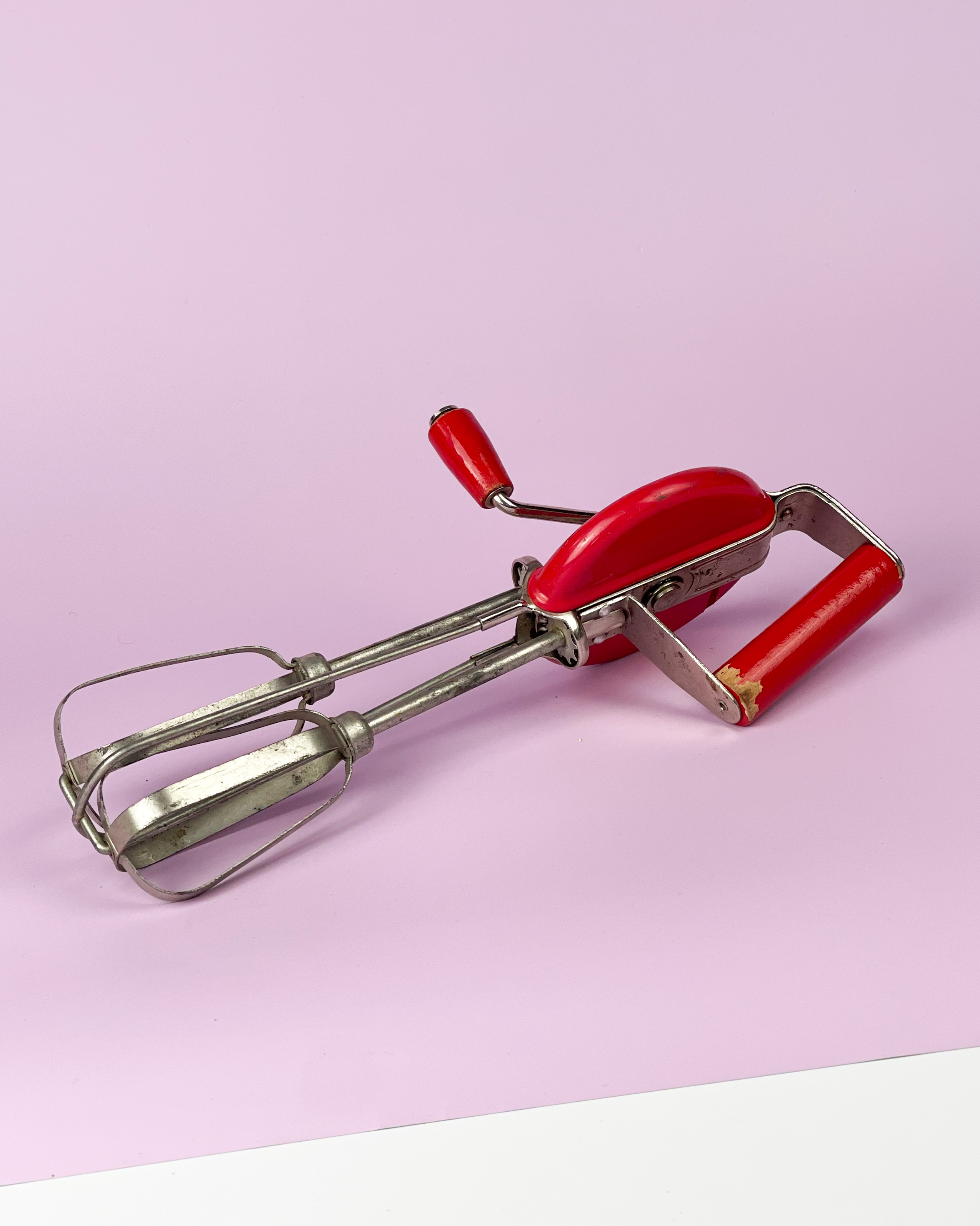 Vintage mikser ręczny na korbkę, lata 60/70. Dzieciaki uwielbiają się tym bawić w kuchni i błocie. ALE znam też dorosłych co biorą na działkę lub biwak. / 29 cm długości / 65 zł