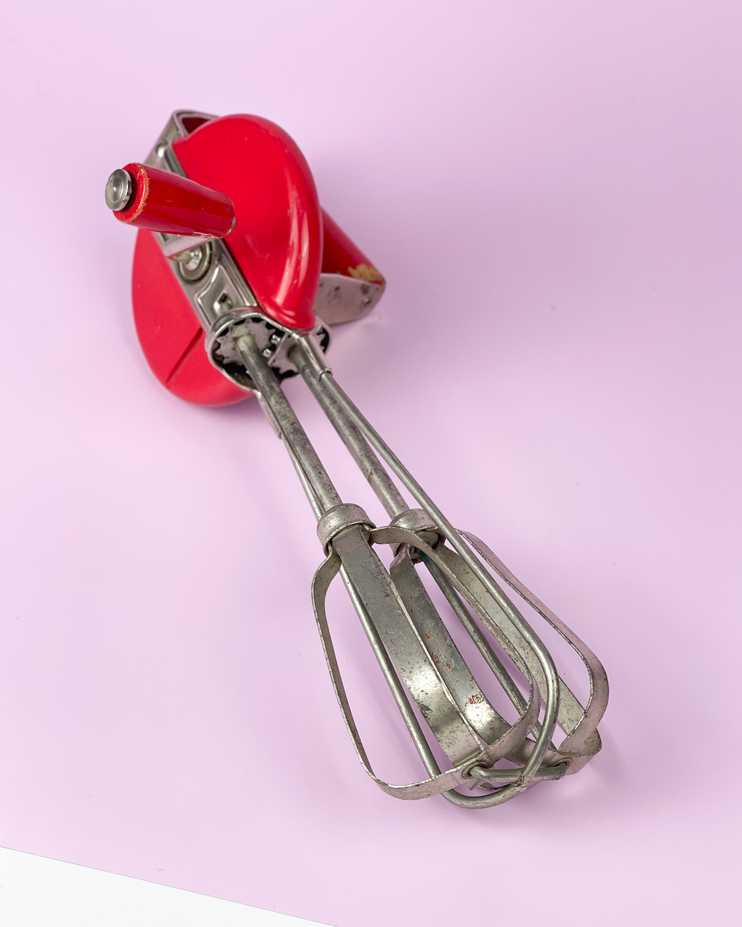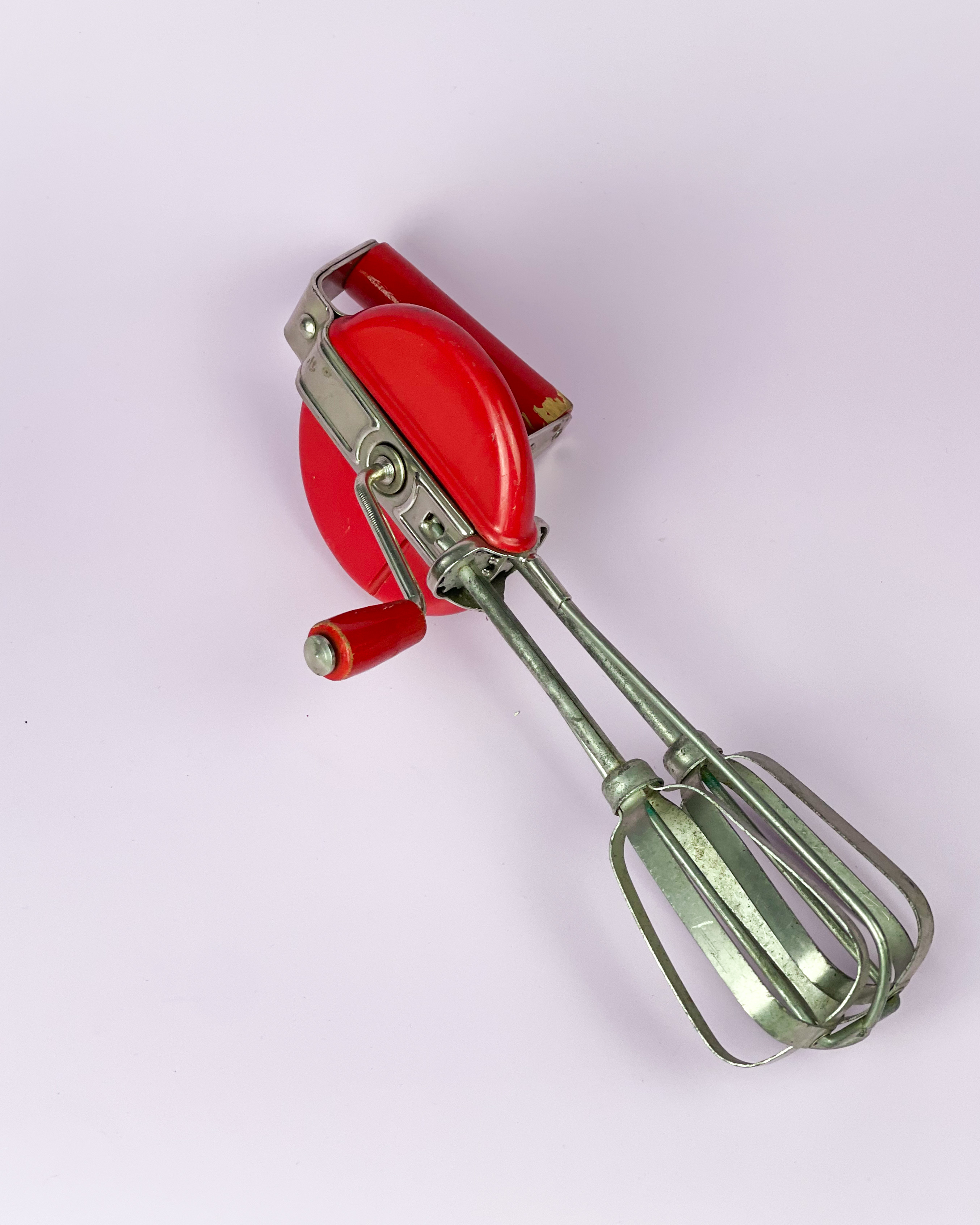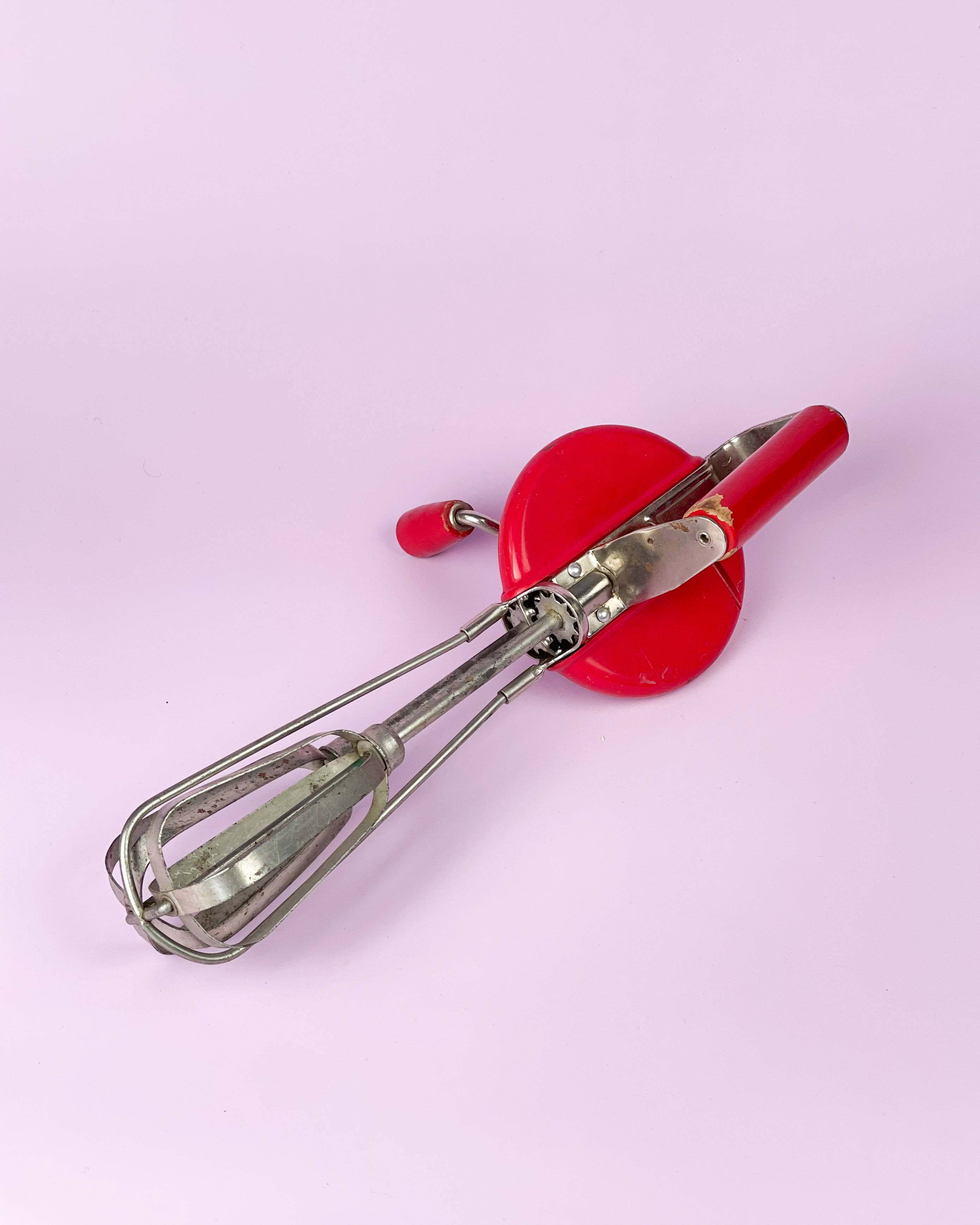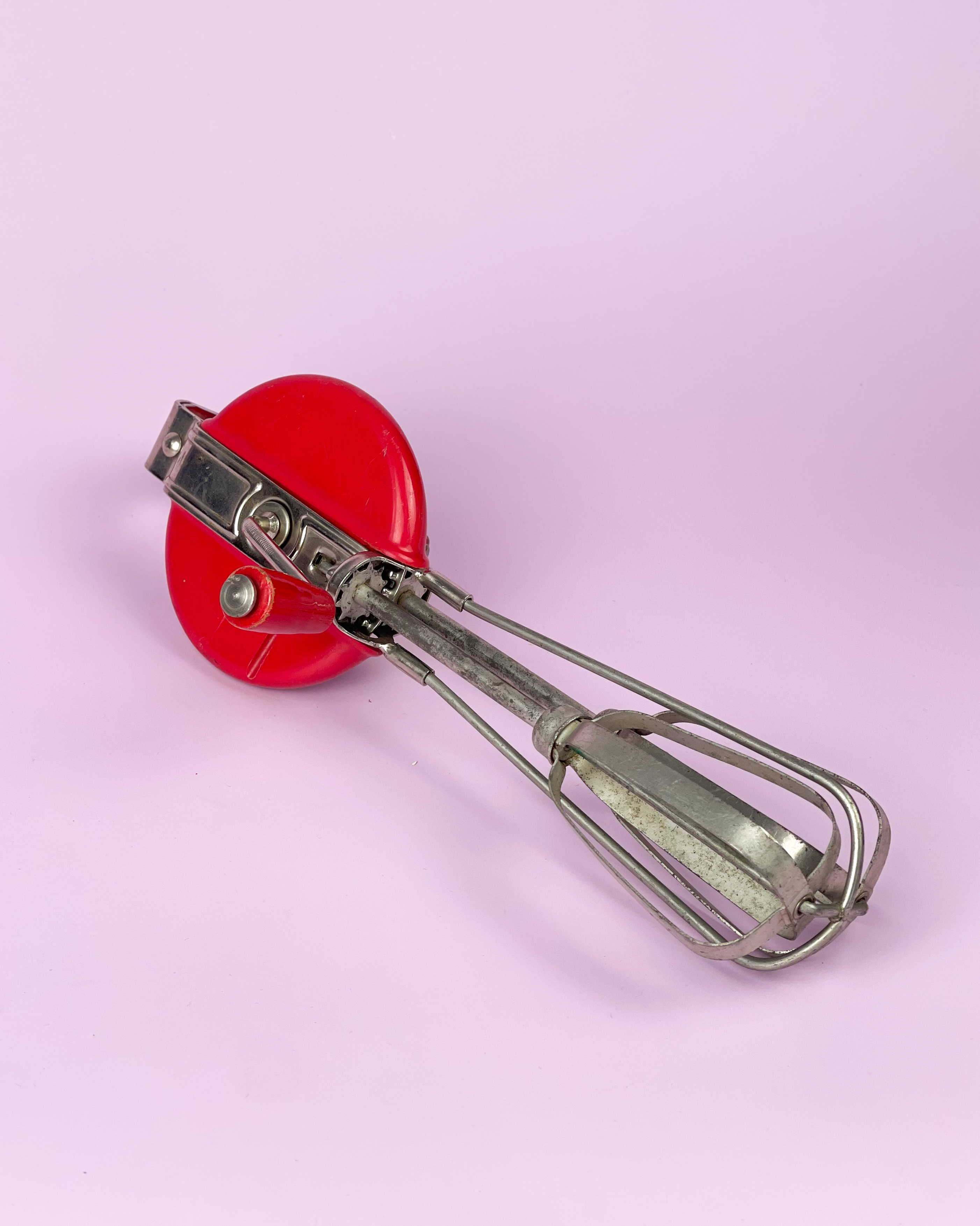 Vintage mikser ręczny na korbkę, lata 60/70. Dzieciaki uwielbiają się tym bawić w kuchni i błocie. ALE znam też dorosłych co biorą na działkę lub biwak. / 29 cm długości / 65 zł