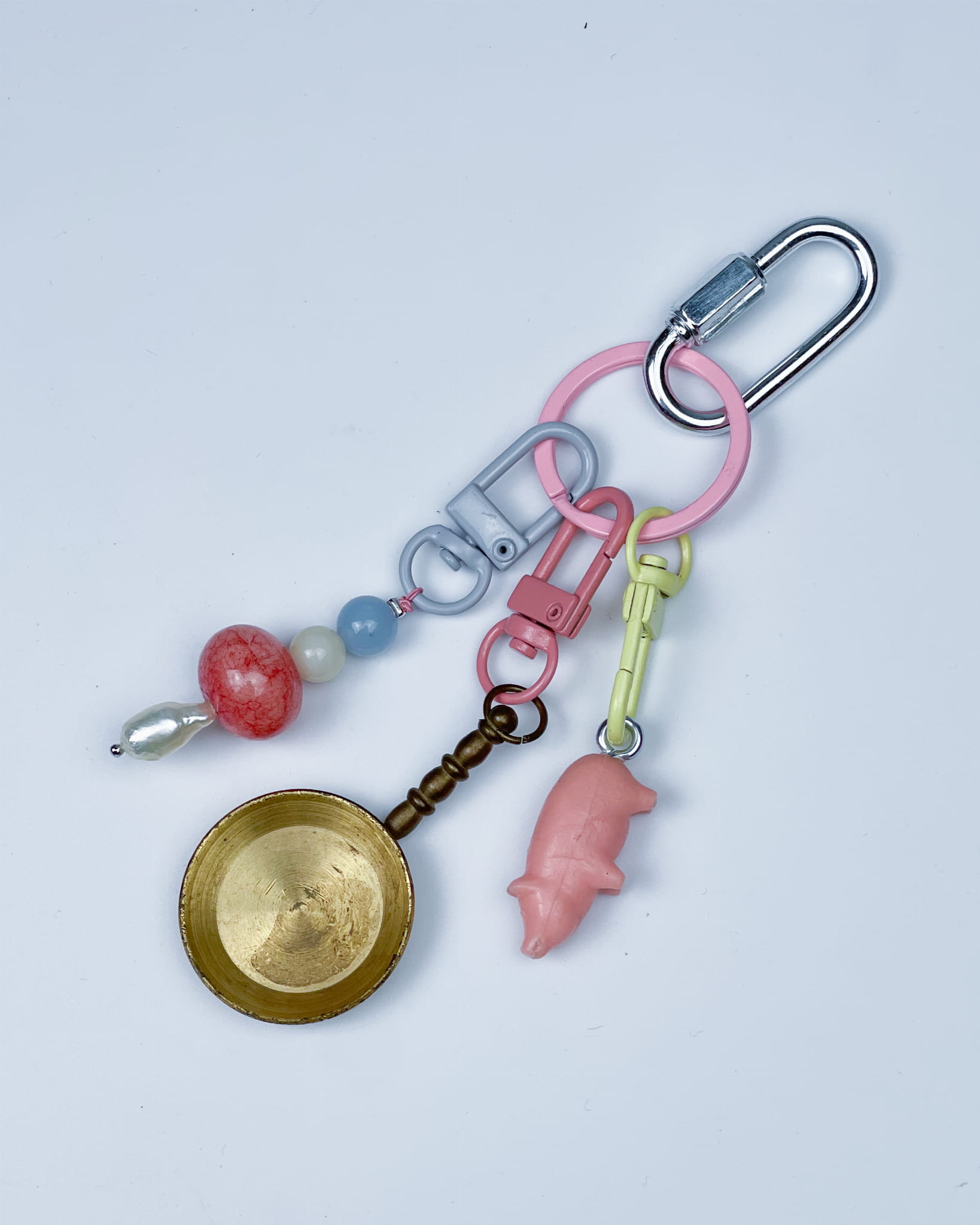 Perły przed wieprze. Ten mój ulubiony! Bardzo mi się podoba, a robiąc go myślałam o @jula Mosiężna patelnia, wieprzowina oraz perła, kwarc z żyłkami, may Chalcedon i jadeit. Ach! / 130 zł