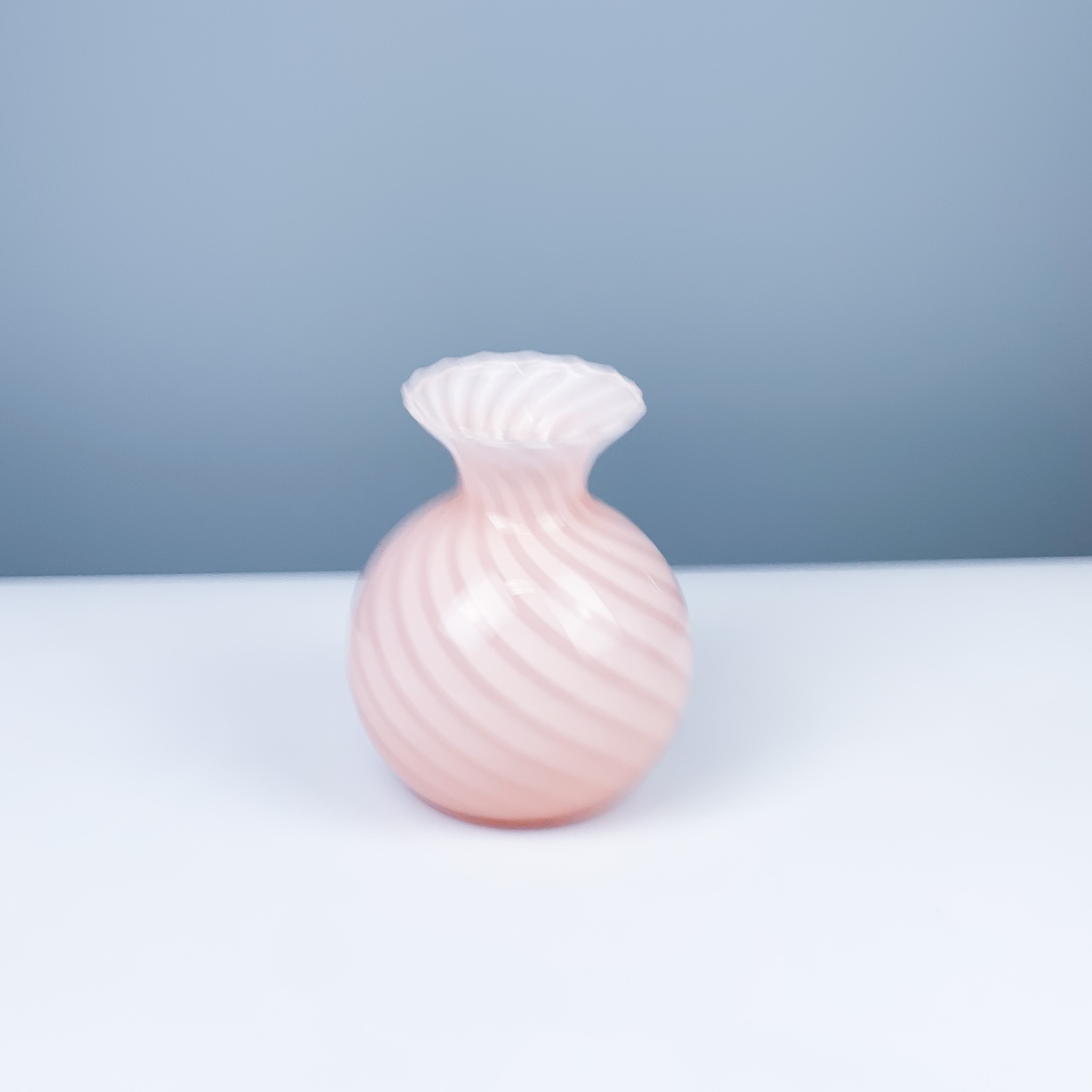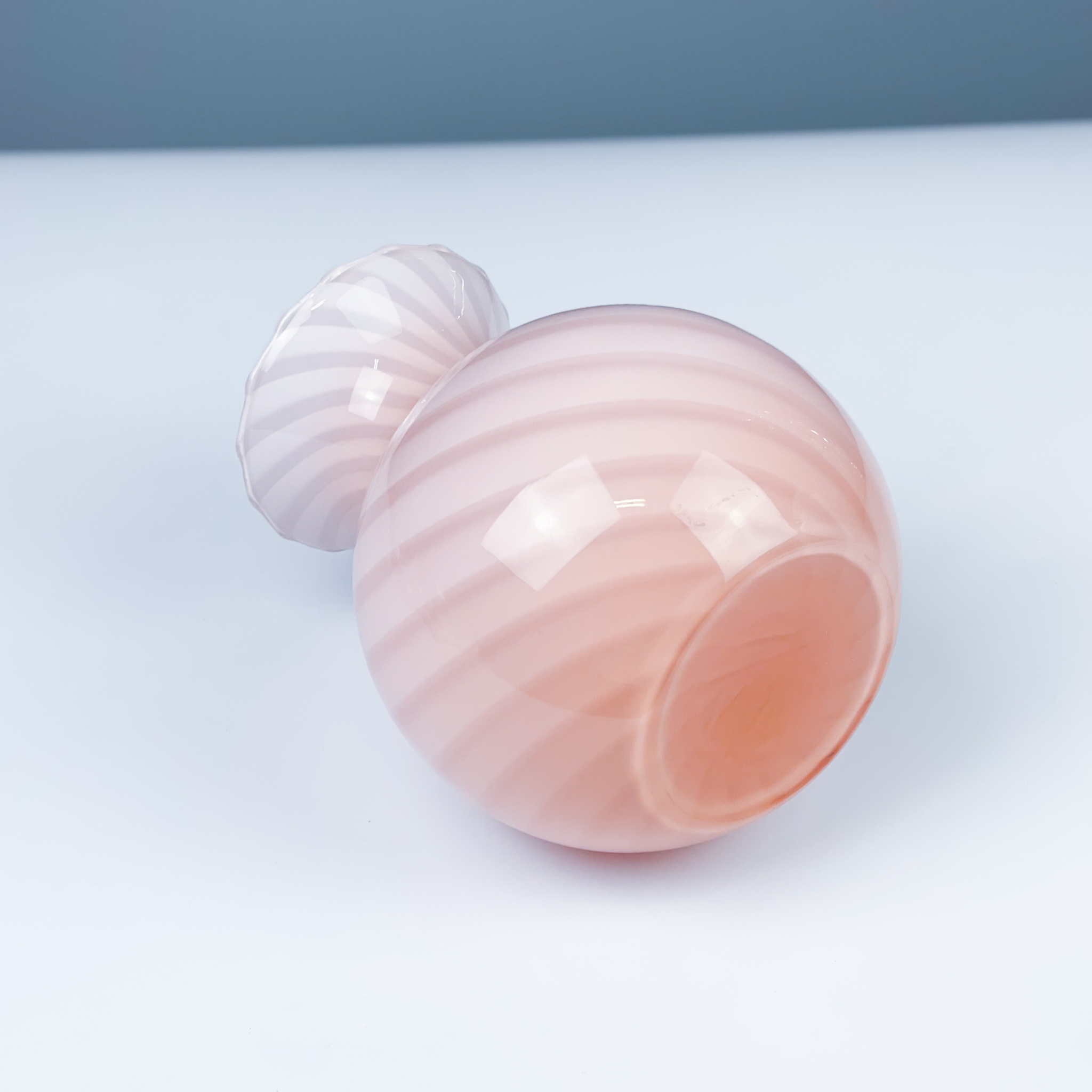 Świrus. Wazon wykonany techniką swirl / Lattimo Filigrana w delikatnym różu. Niemcy, lata 70./80. Jejkuuu. A patrzcie na ostatnie zdjęcia jak pięknie wyglądają razem z tym białym, ach / stan: bardzo dobry, posiada w jednym miejscu zarysowanie (na zdjęciu) / wysokość: 18 cm / średnica: 13 cm / średnica górnego kołnierza: 10 cm