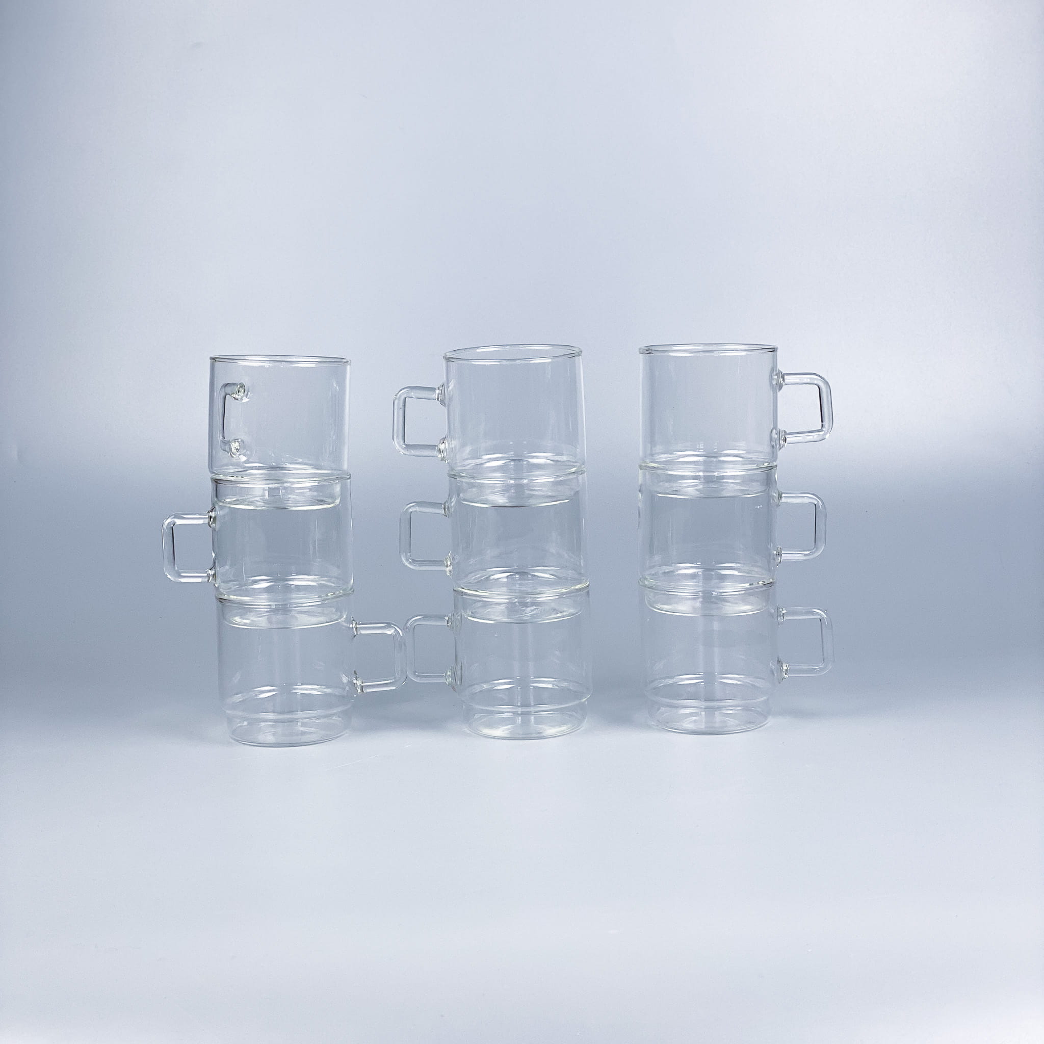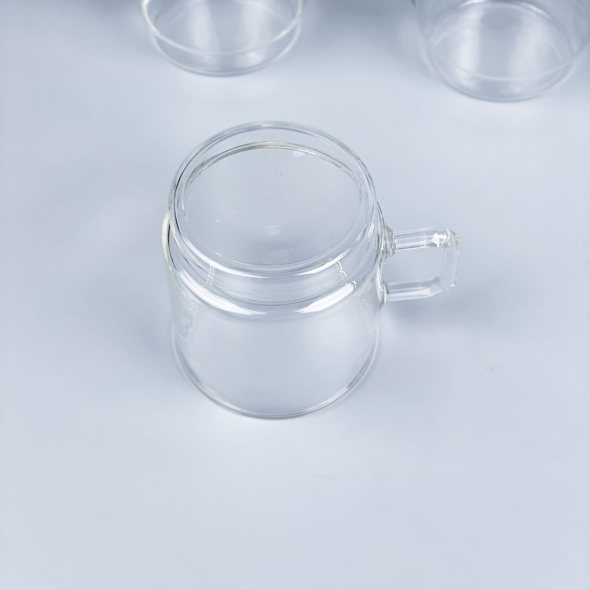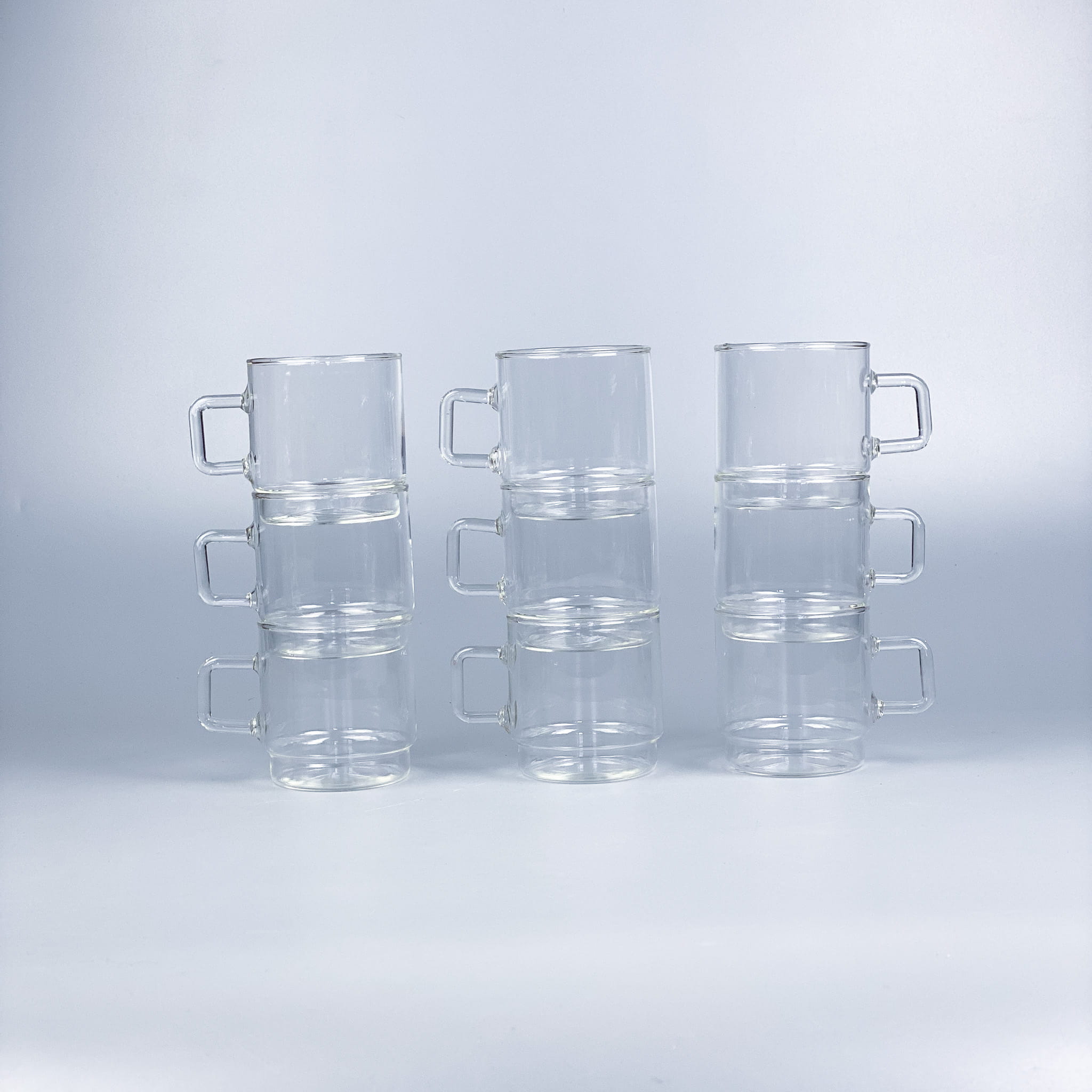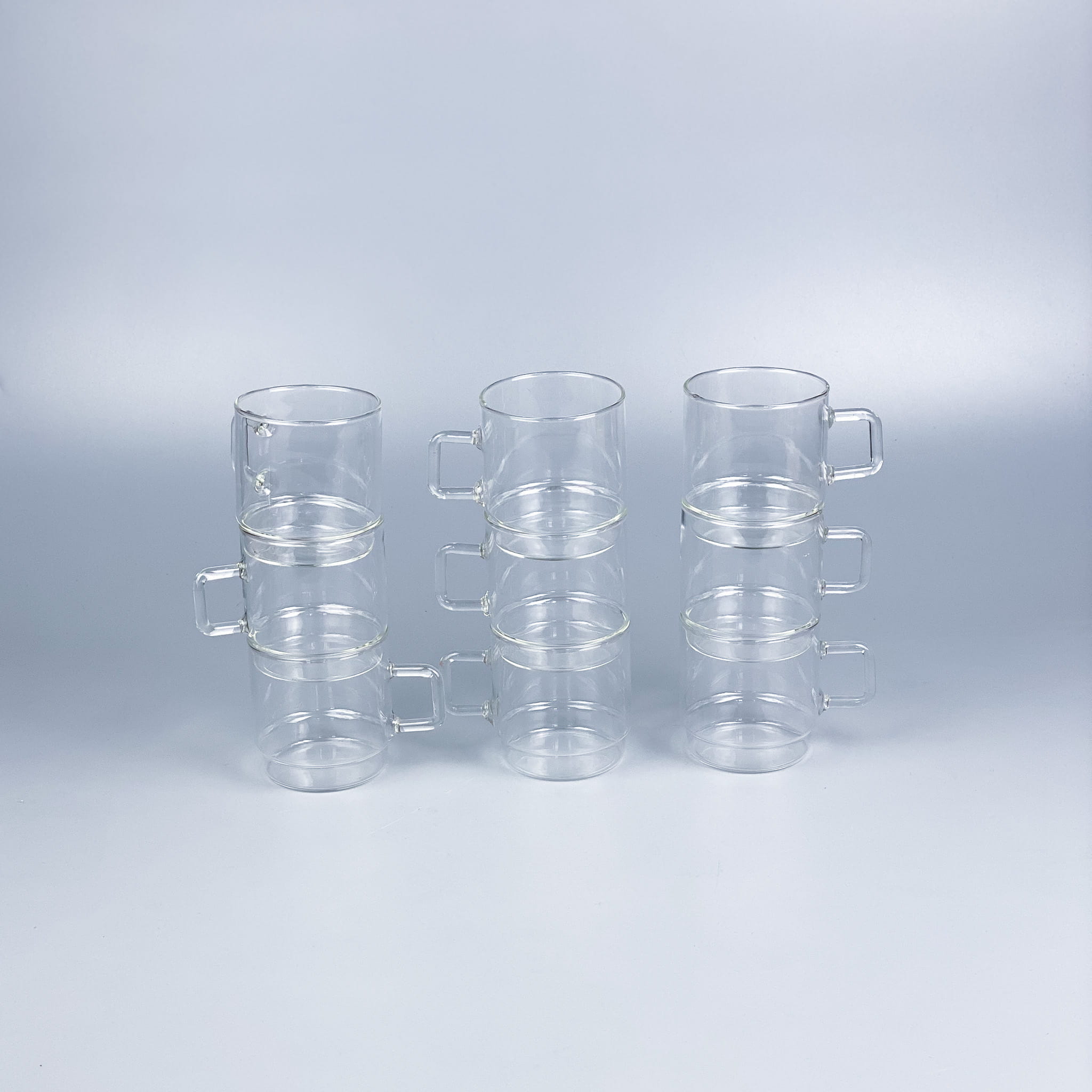 Zestaw szklanek ze szkła borokrzemowego Jena Glas. Fajny rozmiar, wygodne uszko, odporne na temperatury. Stan bardzo dobry, minimalne ślady użytkowania / wysokość: 7,5 cm / średnica: 7 cm / pojemność: 0,2l / 170 zł zestaw 5 sztuk